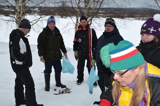 Kisa sujui muuten mukavasti eikä ilmakaan kovin paha ollut, mutta juuri kun saimme palkintojenjaon käyntiin, alkoi armoton märkä lumipyry aikamoisen tuulen kera.. Saimme kuitenkin kisan melkein loppuun asti kastumatta ja pääsimme kuitenkin pahimman pyryn alta pois. Nautimme vielä loput kahvit pullineen ja makkarat ja jätimme Kaarinalle saamamme kalasaaliin kiitokseksi "rannan lainasta" jälleen!