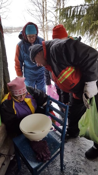 Ennen kisan alkua ja jäälle lähtöä joimme nokipannukahvit pullineen ja täytimme vatsat paistetuilla makkaroilla jaksaaksemme kisata kunnolla.