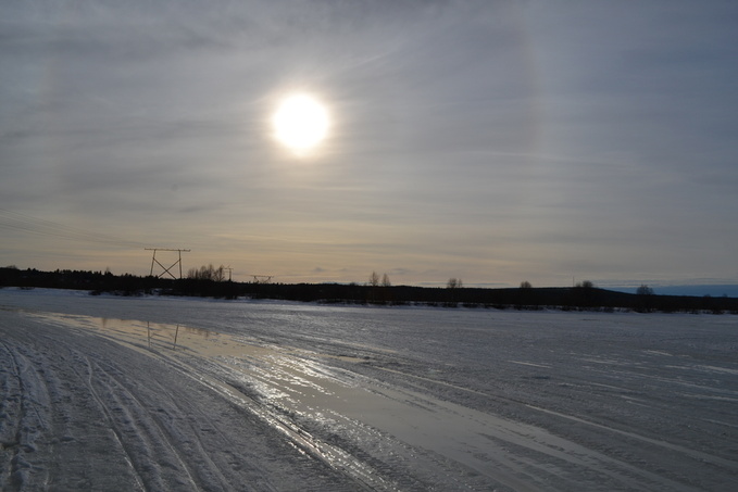 Keli oli myös aivan erinomainen, aurinko paistoi iltaan asti ja lämpöä riitti. Jäälläkään ei ollut kovin paljoa vettä eikä sohjoa, vaikka olikin niin lämmintä ollut koko pääsiäisen ajan. Kisan aluksi juotiin kahvit pullineen ja paistettiin kisamakkarat, jotta jaksettaisiin parin tunnin ajan pilkkiä.