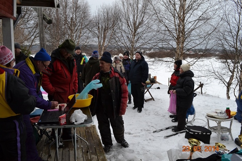 Pilkkikisat käytiin sunnuntaina 23.3.2014 Vitikanpäässä leutoisassa kevätsäässä. Osanottajia oli ihan mukava määrä ja pilkkijöitä saapui joka sarjaan. Miesten sarjan voitti Kari Liste koko kisan suurimmalla kalamäärällä, 1691 g. Naisten sarjassa eniten kaloja pilkki Kaisa Vähä, 749 g. Miesten seniorien sarjassa Atso Myllykangas nosteli eniten kalaa, 1059 g ja naisten seniorisarjassa Hellevi Vilander pilkki ykköseksi, 227 g kalamäärällä. Suurimman kalan (133 g) sai Samuli Jokelainen ja vastaavasti pienimmän kalan, josta ei vaaka edes saanut mitattua painoa (oli sen verran pieni kala) sai Jaakko Uusinarkaus. Ennen kisaa tulisteltiin hetki nuotiolla, vaihdeltiin kuulumisia ja juotiin nokipannukahvit pullineen sekä syötiin vielä makkarat päälle, jotta jaksettaisiin pilkkiä. Parin tunnin kisa sujui hienosti leppoisassa kevätsäässä, vaikkei aurinkoa näkynytkään. Ja juuri kun jäältä tultiin pois ja saatiin palkinnot jaettua tulikin tosi sakea lumisade.. ehdittiin kuitenkin pois pahimman kuuron alta! Mukavan päivän päätteeksi: Kiitoksia teille kaikille osanottajille!