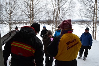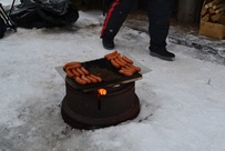 Pilkkiväen saapuessa pikkuhiljaa paikalle keiteltiin ja juotiin nokipannukahvit pullineen, rupateltiin ja vaihdettiin kuulumisia sekä tankattiin vatsat täyteen paistettua makkaraa ennen kisaa.